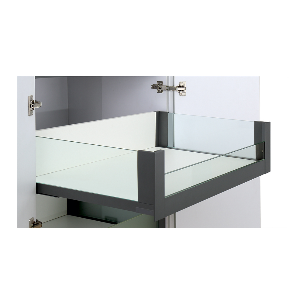 INNER DRAWER SYSTEM WITH SIDE GLASS DRAWER BOX WITH FRONT HALF GLASS
